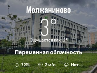 ☀️ На улице облачно, до +6°C.